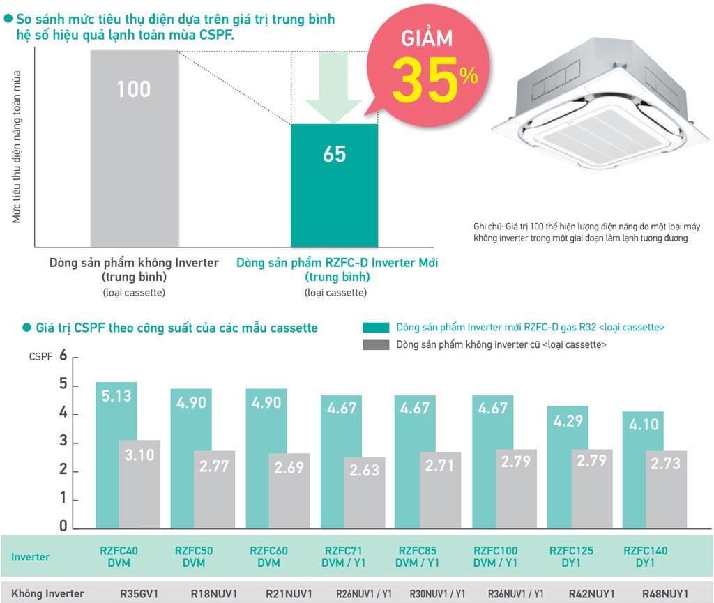 Hiệu Suất Tiết Kiệm Vượt Trội: So với các dòng máy Non-Inverter trước đây, dòng sản phẩm mới này của Daikin giảm mức tiêu thụ năng lượng tới khoảng 80% (dựa trên giá trị trung bình CSPF). Máy điều hòa có thể điều chỉnh công suất làm lạnh theo mức tải, loại bỏ nguyên tắc Bật/Tắt liên tục, giúp tổng chi phí điện năng tiêu thụ giảm đáng kể.